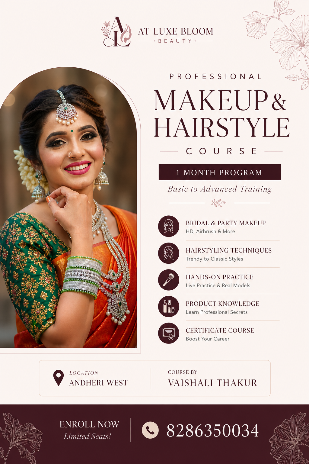Learn directly from industry professionals with real salon and bridal experience. Get insider tips, techniques, and personal guidance throughout your journey.